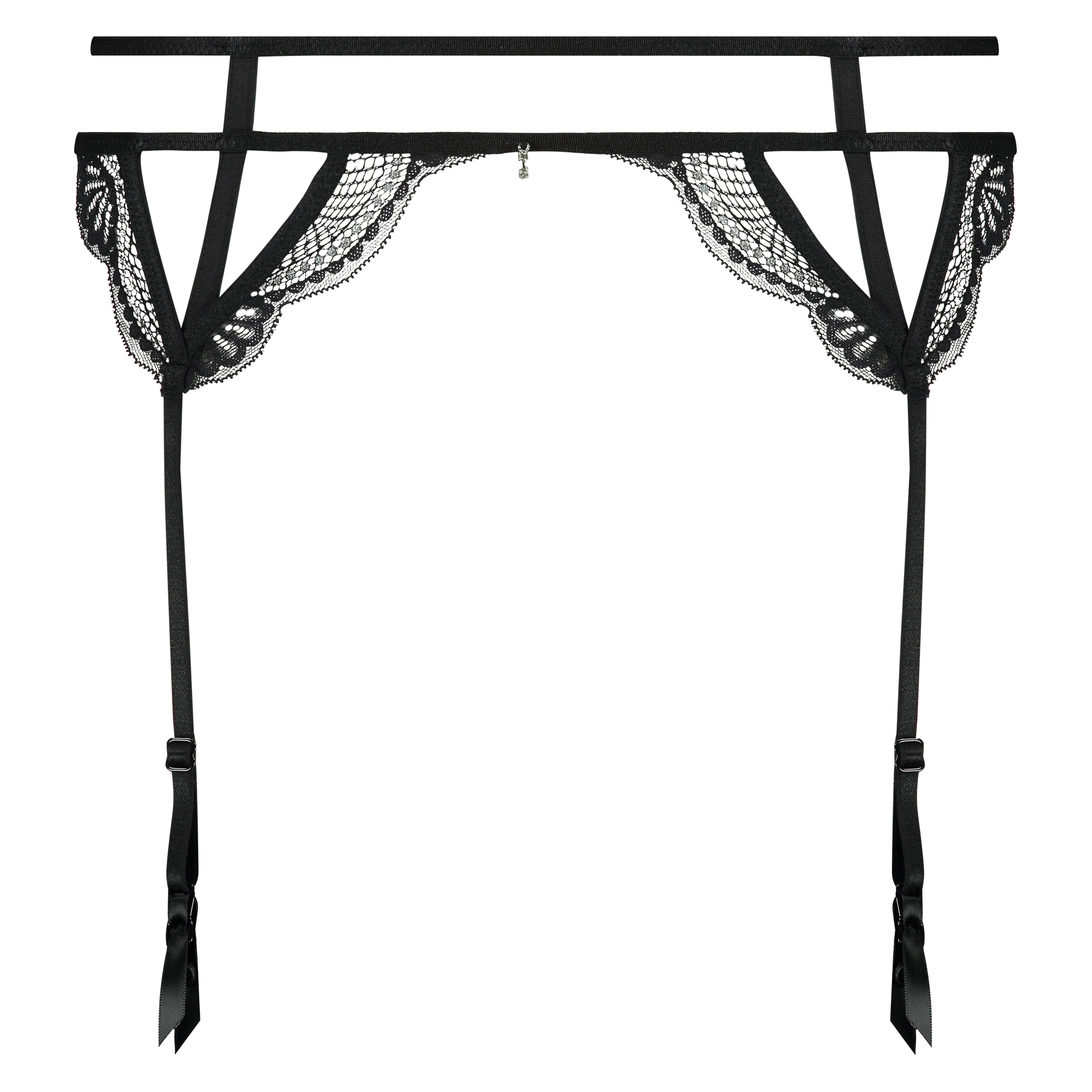 Skap en ekstra sexy look med denne strømpeholderen! Strømpeholderen er full av strappy detaljer og har små blondekanter med rhinsteiner foran og bak. Kombiner med matchende BH & truse fra Private-kolleksjonen og du har et komplett sett!